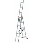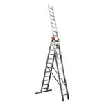 Универсальные трехсекционные лестницы для профессионального и полупрофессионального применения подходят для выполнения широкого спектра работ. Направляющие и ступени изготовлены из легированного рифленого алюминиевого профиля и имеют дополнительные ребра жесткости.